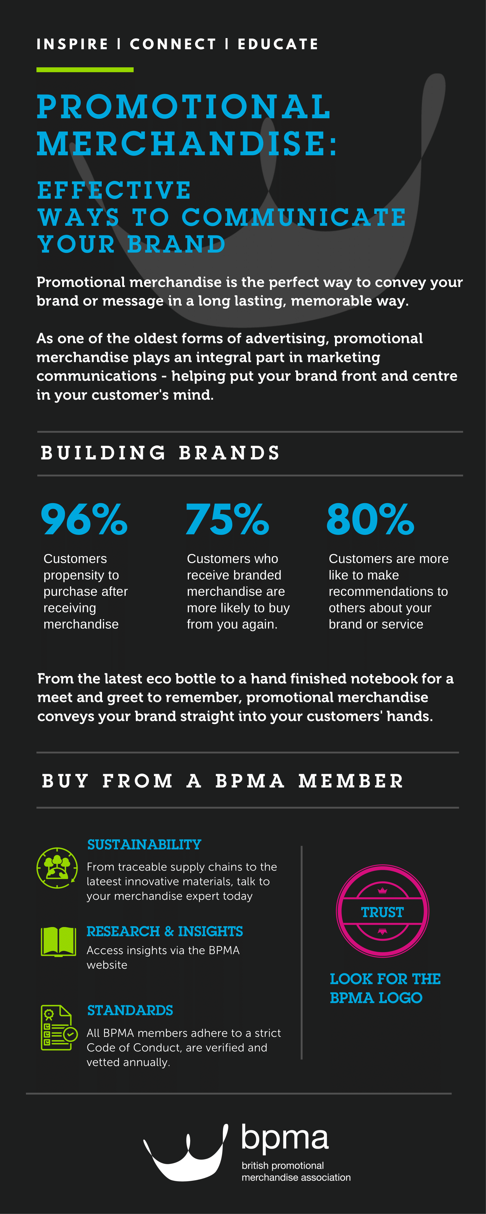 Always look for the BPMA stamp when you buy promotional merchandise for your company to ensure you get the best quality merch from a company you can trust.